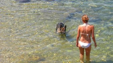 ジュアン・レ・パン観光情報犬と泳ごう! ワンコOKのビーチ、アンチーブ岬のDES ONDESビーチ。 今日のワンコはシェパード!でかっ、、。 体格もいいし体力があるのか泳ぎがしっかりしてて頼もしい。 このワンコは泳ぎが好き、とか海が好き、というより、 ご主人を守る意味で、ご主人... 2007.07.24ジュアン・レ・パン観光情報